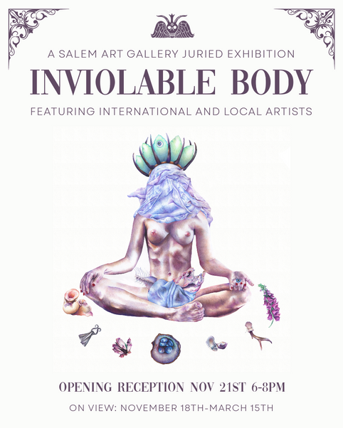 Join the Salem Art Gallery and artists of "Inviolable Body", to celebrate our annual juried exhibition. This opening reception will feature charcuterie and light refreshments, FREE admission, and a chance to meet the artists.